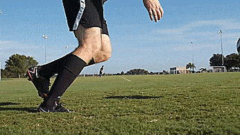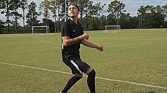 使用我们的脚尖和脚掌内侧之间的区域,在球弹起后击球。