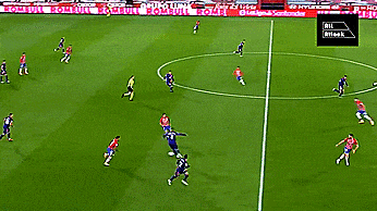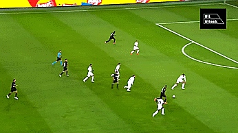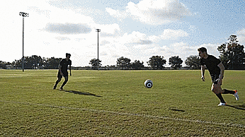 但我们用脚底直接把球滚到我们身后队友的跑动路线上。