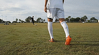用我们的脚后跟外侧巧妙地传向目标方向。