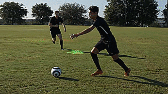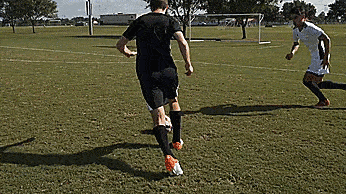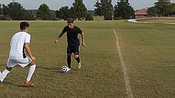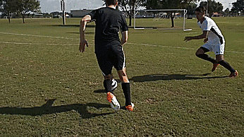 当防守队员接近我们时,用我们的脚底将球拉离防守队员,然后旋转。