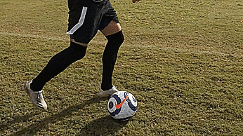 用一只脚触球越过我们的身体,使球远离防守球员。
