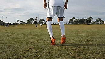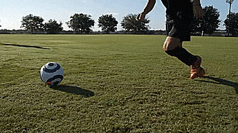 用我们脚的顶部内侧边缘击打球的底部,但稍微偏离中心。
