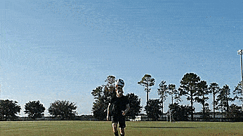 当球从我们身后的空中飞来时,我们要判断好落点站好,让球击中我们的背部。