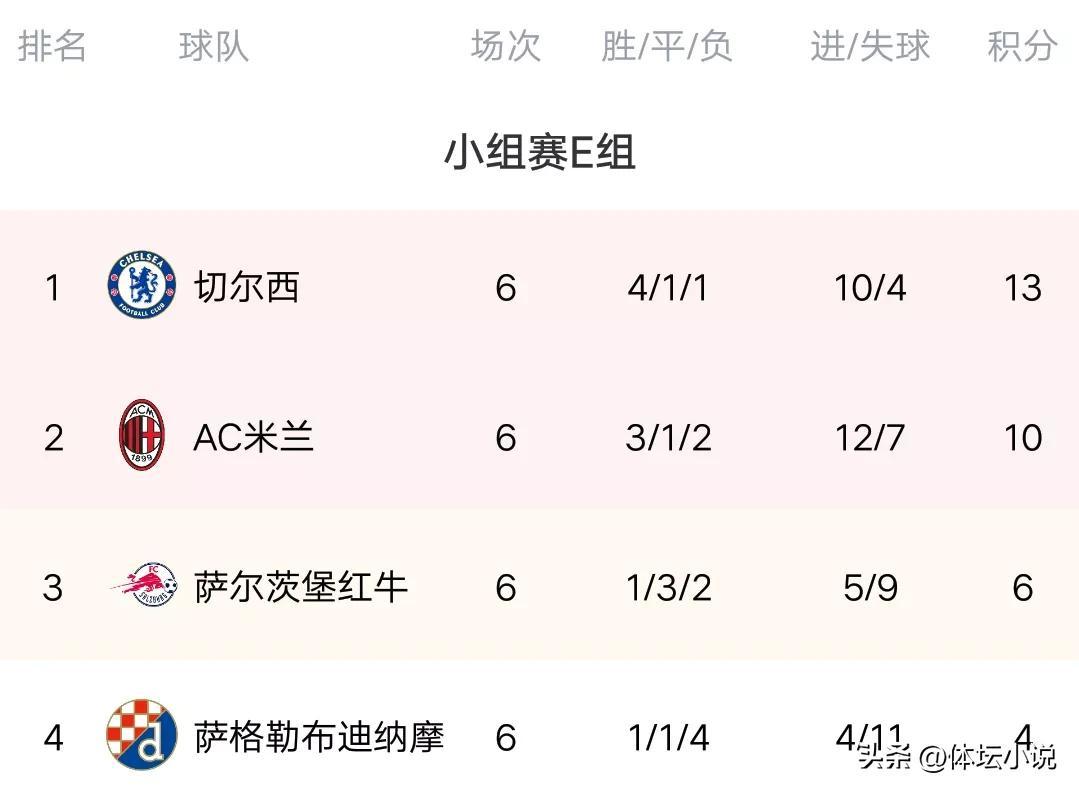 欧冠E组末轮两场比赛,切尔西2-1击败了萨格勒布迪纳摩,收获4连胜,强势拿到了小组第一晋级16强,而米兰在与萨尔茨堡红牛的生死大战中,主场强势大爆发依靠吉鲁的2射2传,气势如虹的轰出4-0的比分击溃了对手,成功搭上了欧冠16强的末班车,值得一提的是这也是米兰时隔9年再次晋级欧冠16强,结束了漫长的等待!