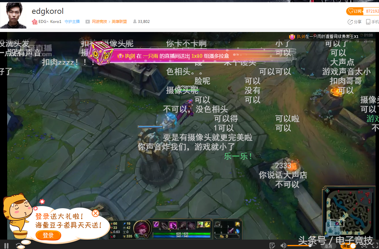 在玩了两把后,Koro1开启了英雄联盟的直播。