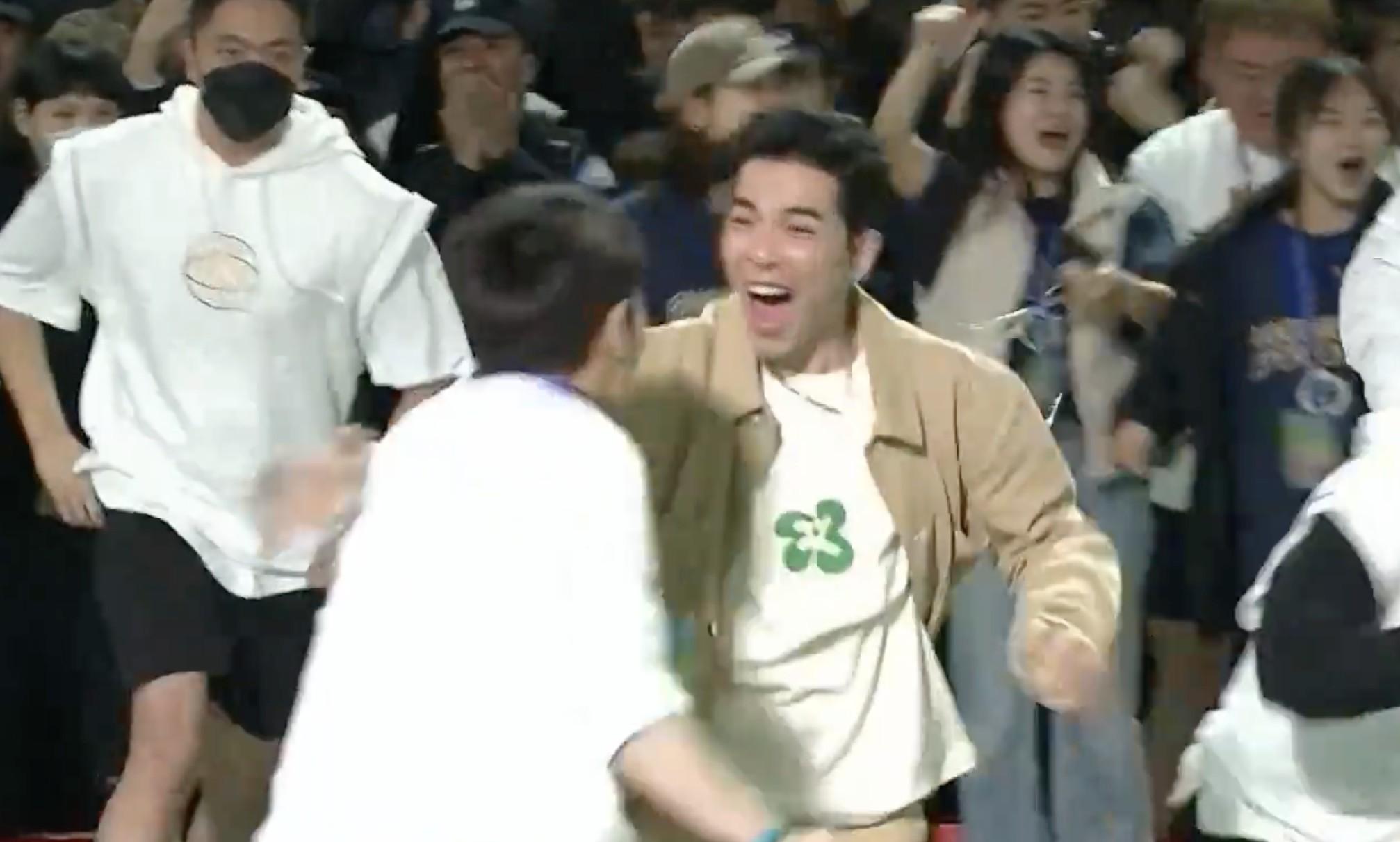 看到自己支持的球队绝杀后,萧敬腾冲入场内与队员们一起庆祝。