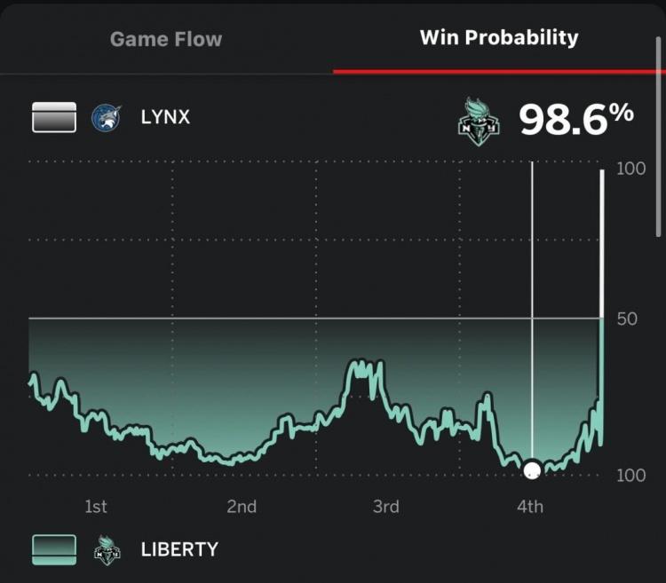 此外,根据ESPN的数据统计,自由人本场比赛的赢球概率一度达到98.6%。