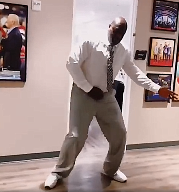 “师弟”史蒂芬森也是一名极具舞蹈天赋的篮球运动员。在场外,史蒂芬森曾经录制了一段自己穿着花衬衫跳舞的视频,魔性的舞蹈加上逗乐的表情也是引得网友捧腹大笑。