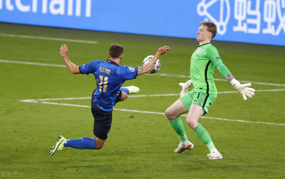 第62分钟,基耶萨从左路拿球进入禁区,横向内切摆脱多人防守,右脚贴地抽射,皮克福德倒地将球扑出。第64分钟,英格兰队开出左侧角球,斯通斯力压对手头球攻门,皮球被多纳鲁马用指尖托出横梁。
