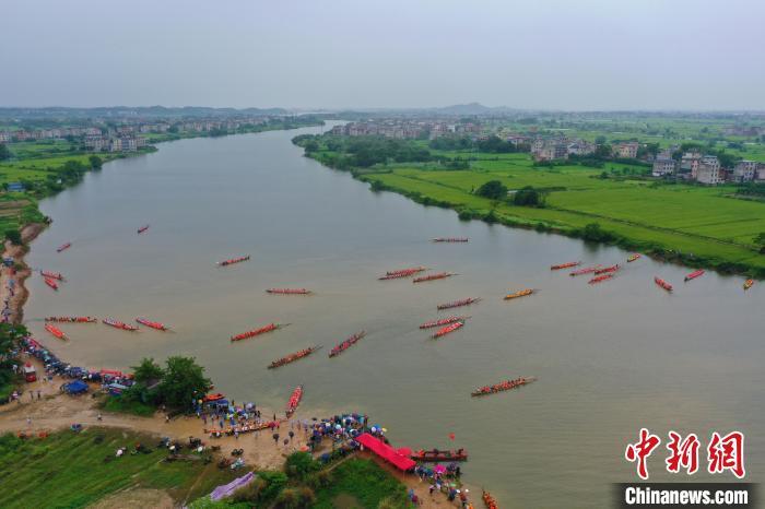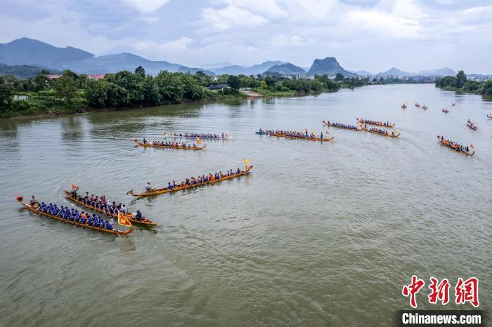 6月18日,江西新余,百姓自发组织龙舟沿袁河水系汇聚仙女湖昌山古庙举行“龙头活水”端午民俗活动。 伍荣达 摄