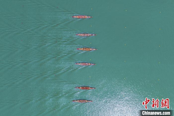6月21日,在江西省吉安市万安县心安湖,2023年江西省龙舟大赛暨第二届万安龙舟文化旅游活动举行。 邱哲 摄