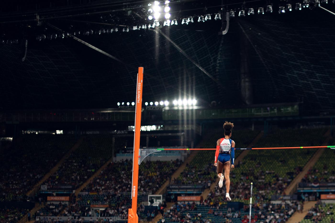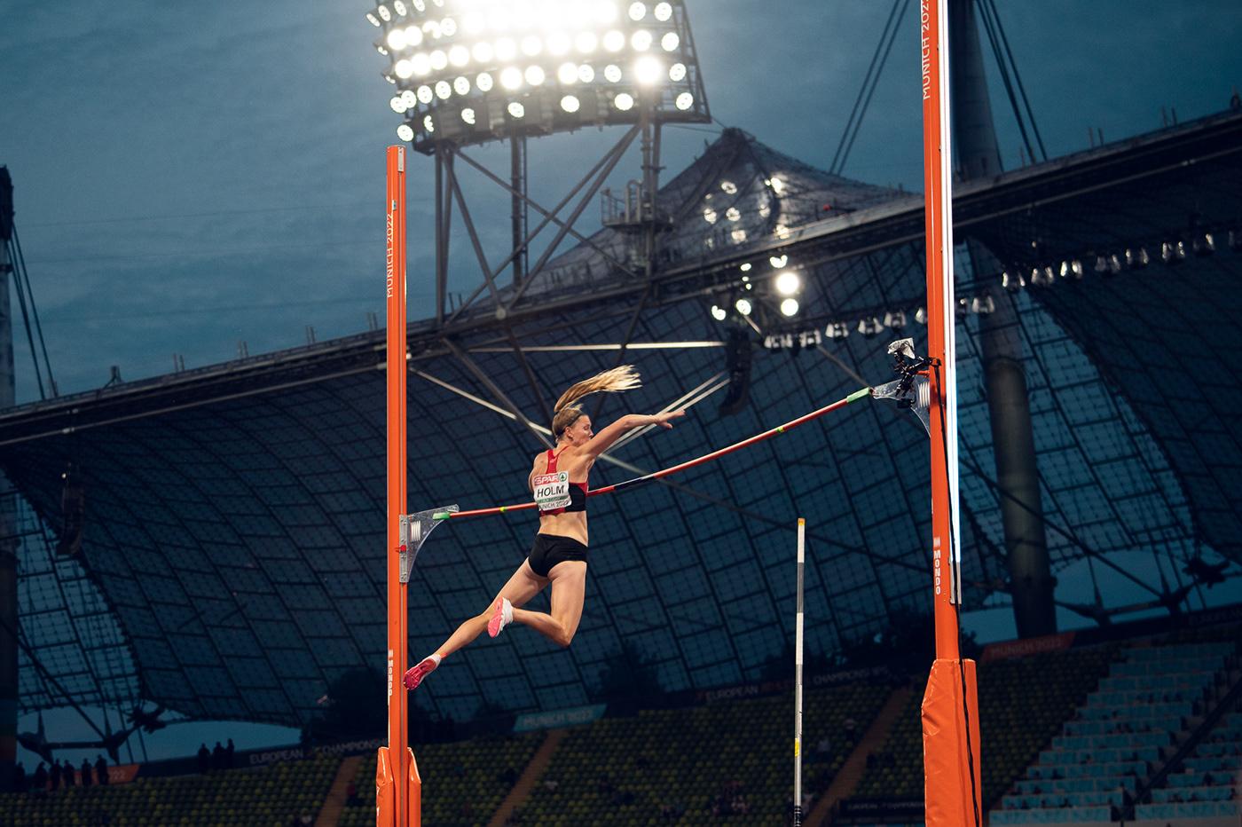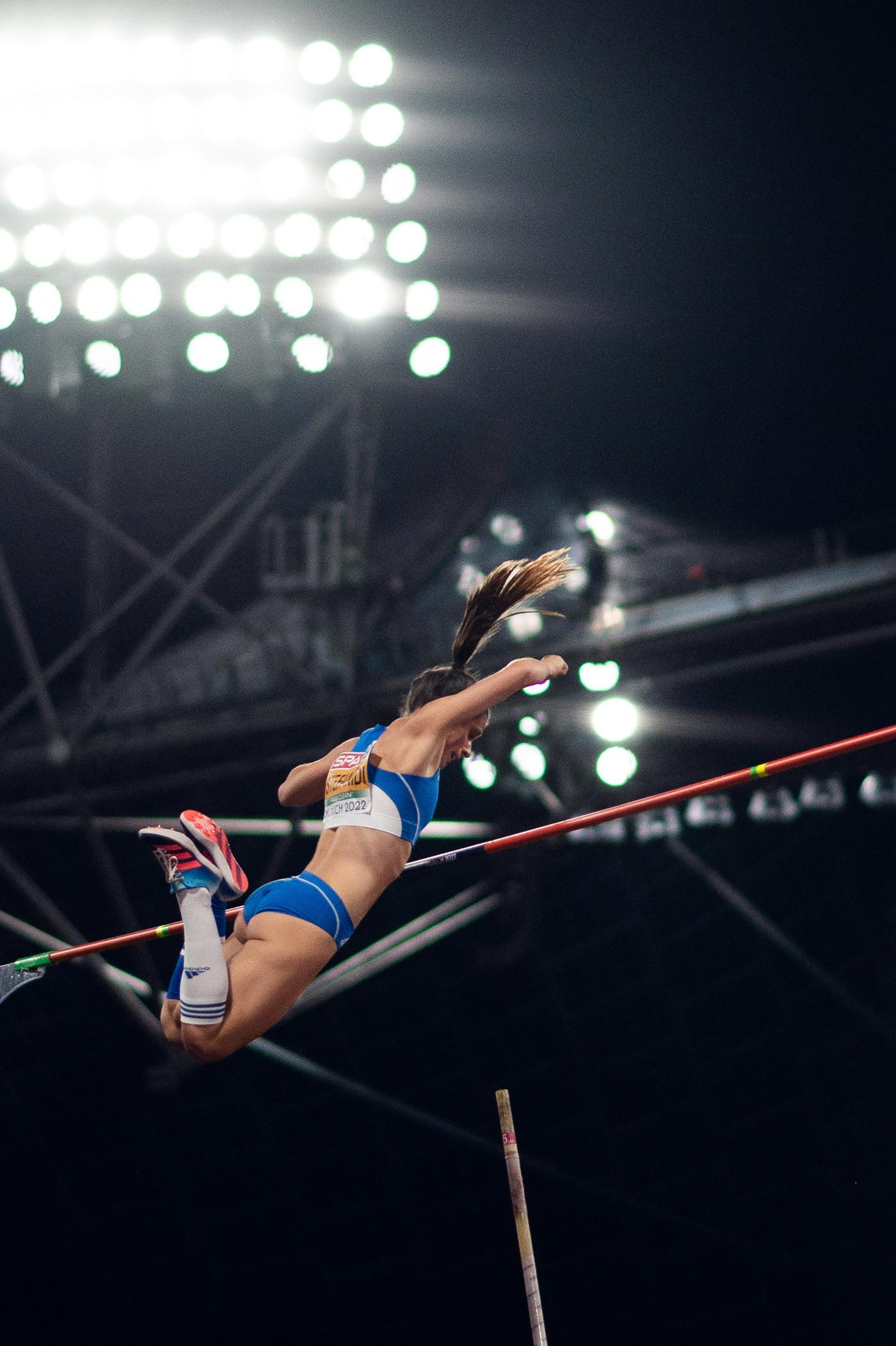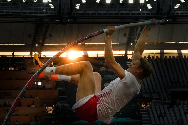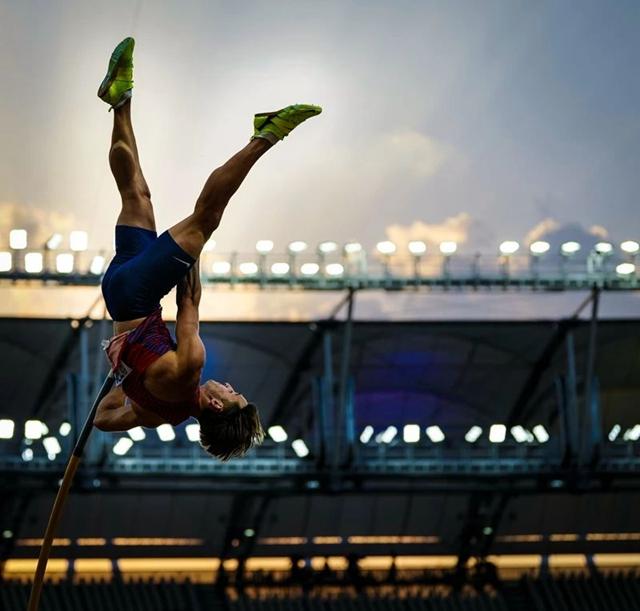 男子撑杆跳远那天晚上的比赛,我觉得至少还有一张照片看着比较顺眼,比赛在傍晚进行,天空中出现晚霞,时间很短暂。我常认为体育摄影师其实也是靠天吃饭,在一些平淡无奇的比赛中,画面就没有意思,如果借助不同的天色,可能会为图片增光添彩,其实这些内容和摄影师的主观能动性没有太大的关系,主要也是依靠于天气和运气,它就像我们饭菜中的调料,在味觉上给你一些刺激。
