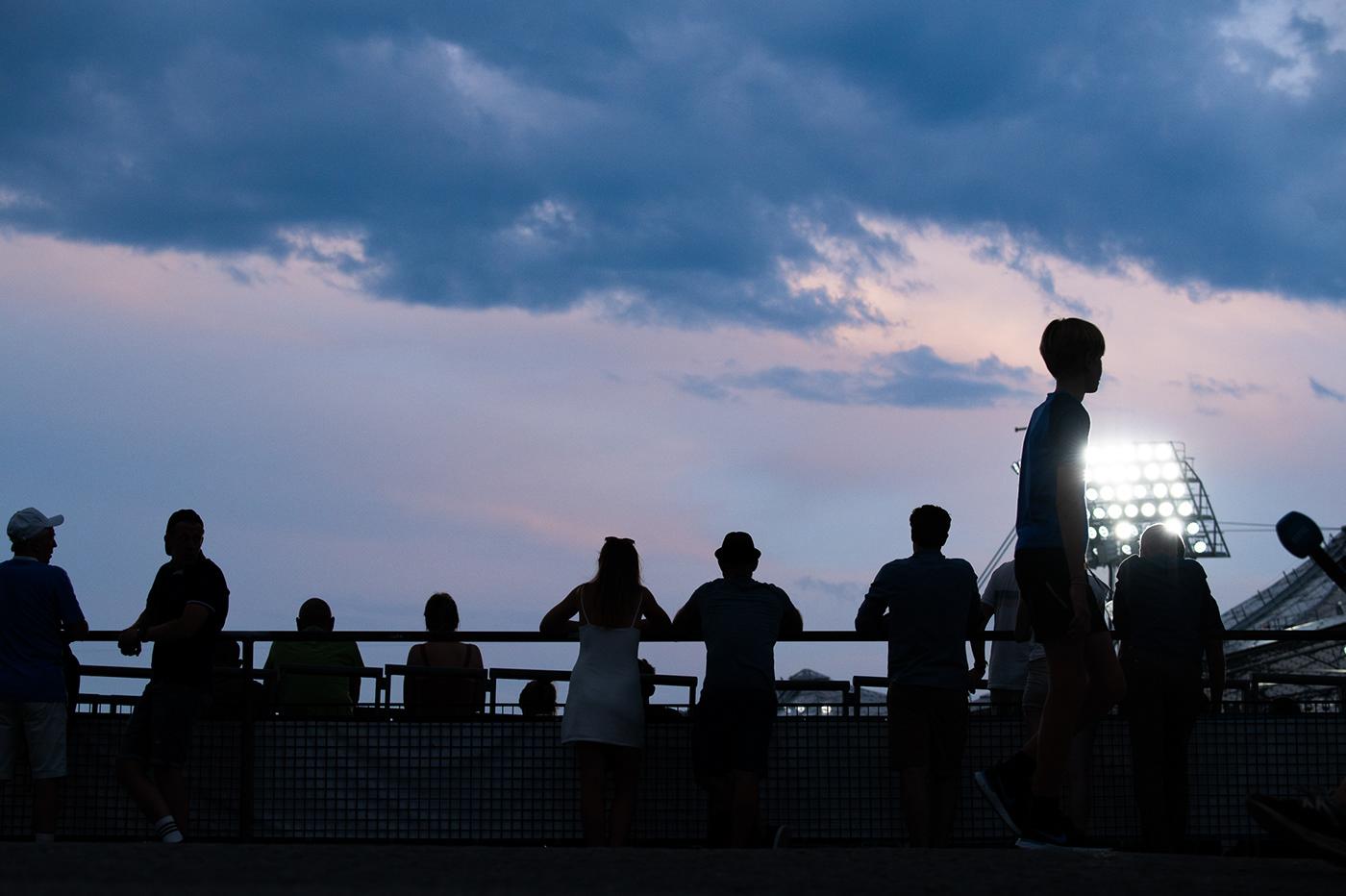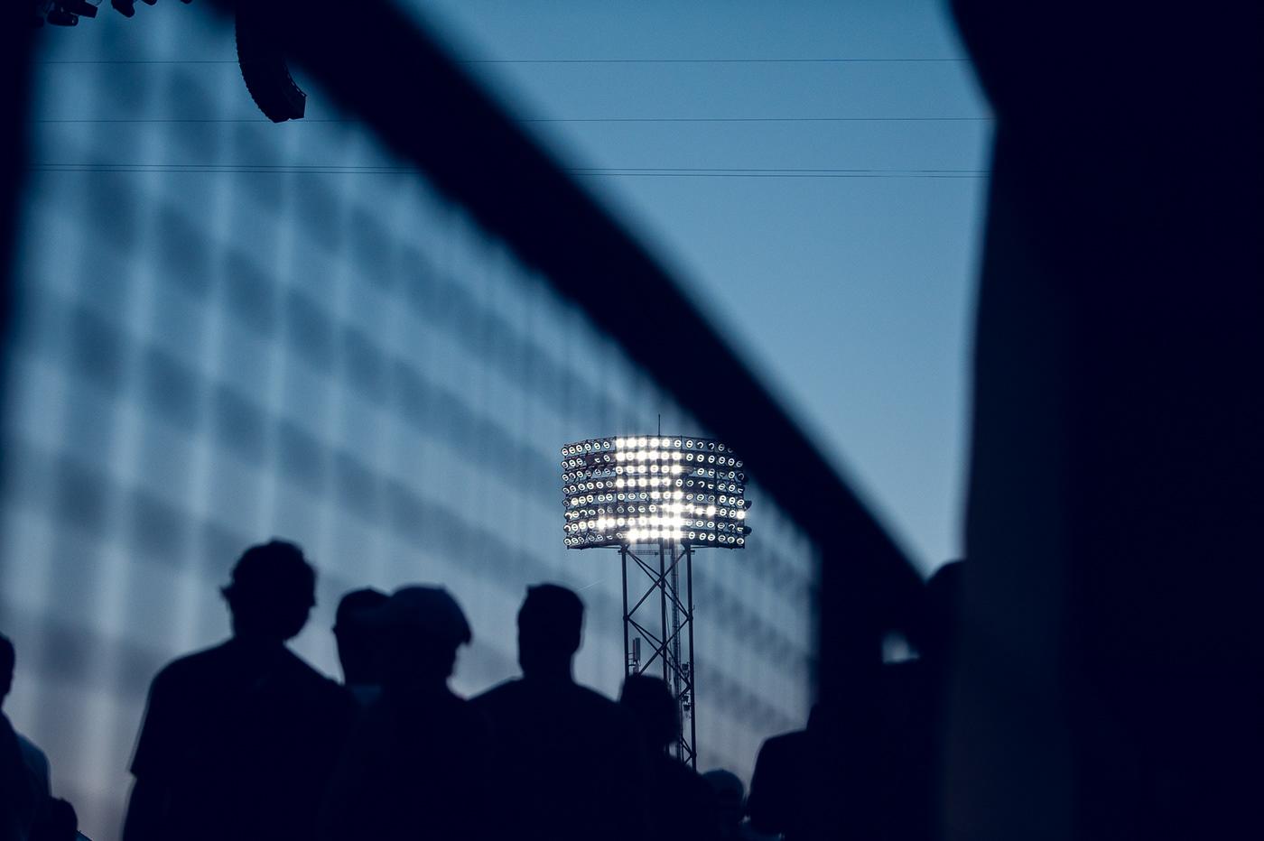 在当晚的决赛中,我照例拍摄了一些动作瞬间,内容和以往大同小异,我想作为一个坚守了多年的老将,怎么能有一张照片能体现出她坚守的精神呢?在比赛结束后,巩立姣获得了铜牌,在她挂上铜牌的时候仰望天空,我用索尼 FE 70-200mm F2.8 GM OSS II 镜头拍摄下月亮挂在天空的画面,此刻,我想到一句话 “月有阴晴圆缺,人有悲欢离合”。