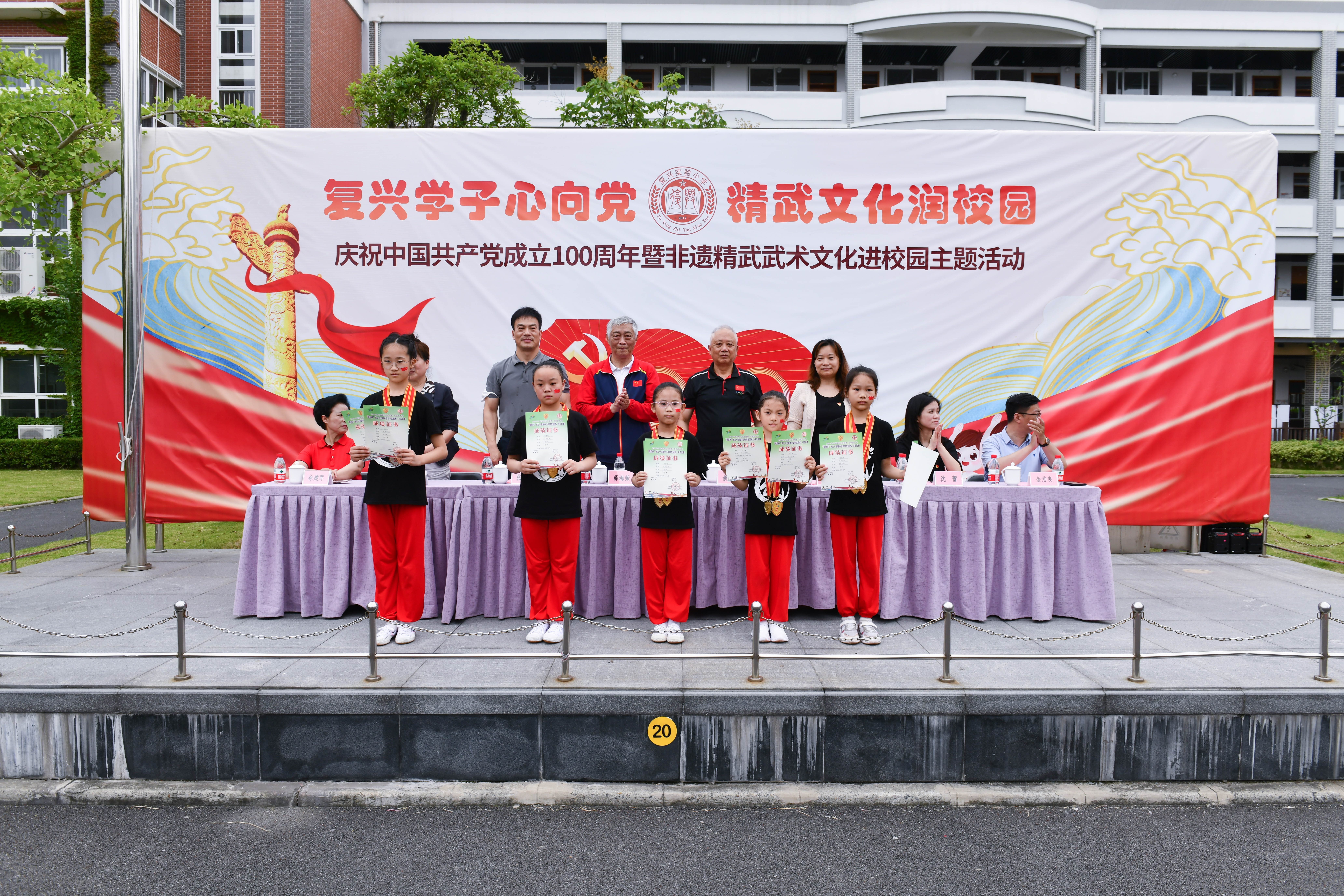抱拳行礼、一招一式、刚柔并济......6月9日一大早,在虹口区复兴实验小学的操场上,全校635名学生精神奋发地展演起精武武术,共同参与“复兴学子心向党 精武文化润校园”庆祝中国共产党成立100周年暨非遗精武武术文化进校园主题活动。