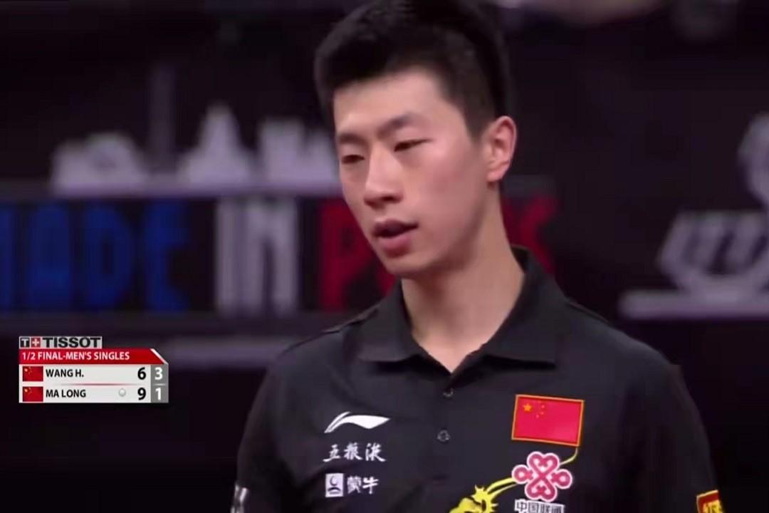 王皓连续压马龙反手位,马龙反手变直线,王皓正手反拉下网,10-3。