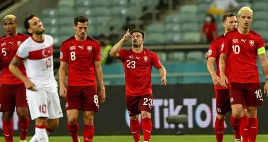 瑞士对阵土耳其。上半场第6分钟,瑞士打破僵局,祖贝尔助攻塞费罗维奇破门,瑞士1-0土耳其。第26分钟,祖贝尔助攻沙奇里轰出世界波进球,瑞士2-0土耳其。第62分钟,恰尔汗奥卢助攻卡赫维奇破门,土耳其1-2瑞士。第68分钟,瑞士锁定胜局,祖贝尔再次助攻沙奇里破门,最终全场比赛结束,瑞士3-1大胜土耳其!