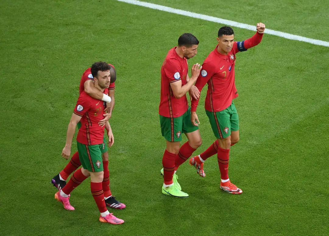德国对阵葡萄牙。上半场第14分钟,若塔助攻C罗破门,葡萄牙1-0德国。第34分钟,德国加强了逼抢,结果鲁本-迪亚斯打进乌龙球,德国1-1葡萄牙。第37分钟,德国队再次反击,格雷罗打进乌龙球,德国2-1葡萄牙。第50分钟,德国队戈森斯助攻哈弗茨破门,德国3-1葡萄牙。第59分钟,基米希助攻戈森斯高高跃起头球破门,德国4-1葡萄牙。第66分钟,C罗助攻若塔破门,最终全场比赛结束结束,葡萄牙2-4惨遭德国逆转!