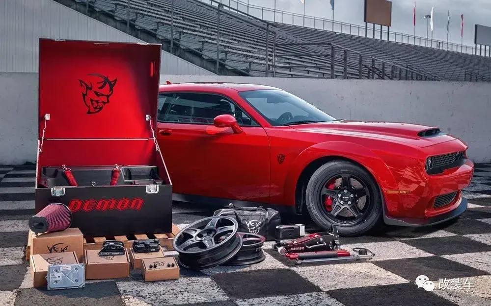为了区分Super Stock和Demon两个车型,道奇在这辆车上取消了车迷们最喜欢的直线加速套装 ,这就意味着这辆车不能选装标志性的窄前轮和高流量空滤等零件。