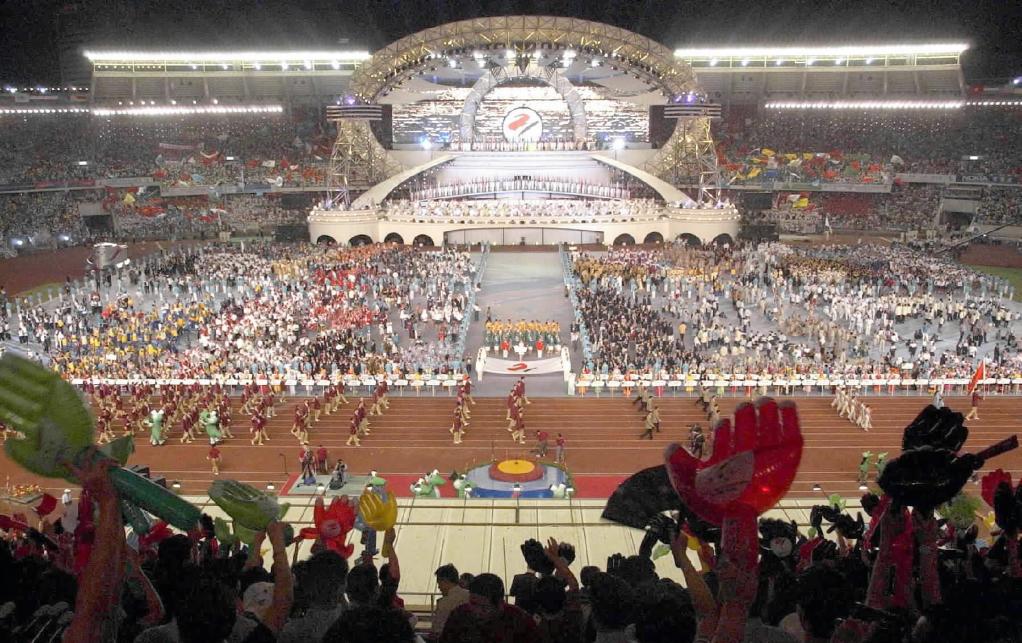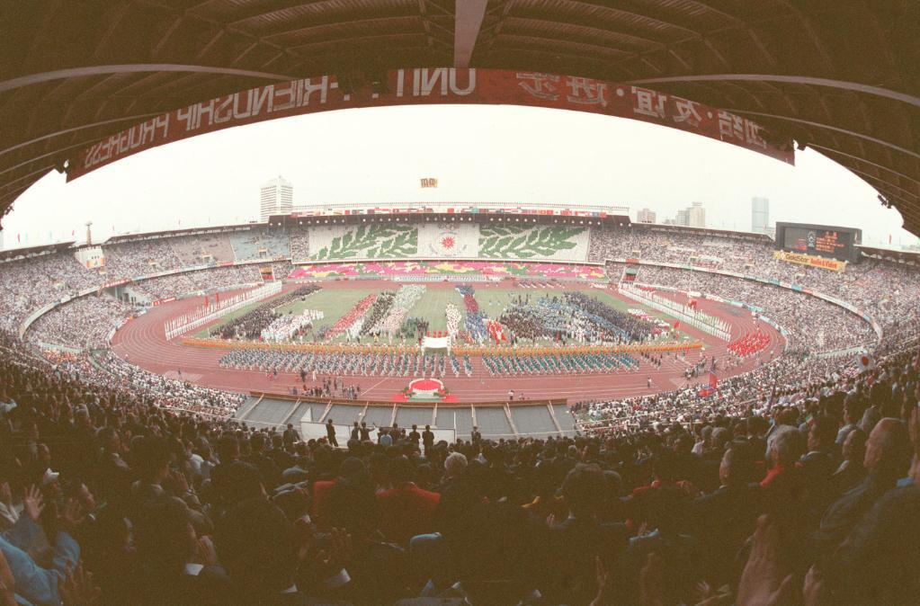 第十一届亚运会于1990年9月22日在北京工人体育场开幕。新华社记者宋连峰摄