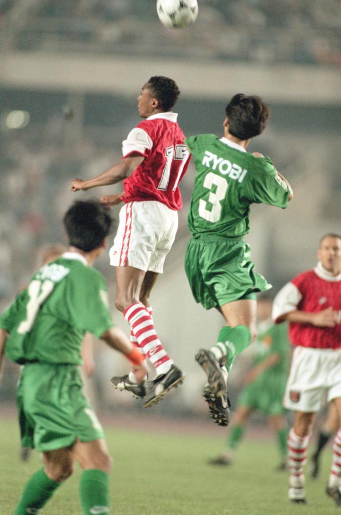 1995年5月17日,北京国安足球队在北京工人体育场以2:1战胜英超阿森纳足球队。新华社记者刘宇摄