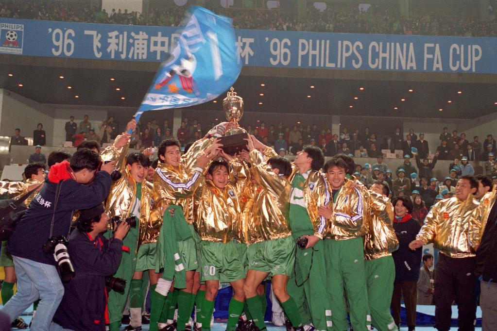 1996年11月3日,北京国安队以4:1战胜济南泰山将军队,捧得足协杯。新华社记者李俊东摄