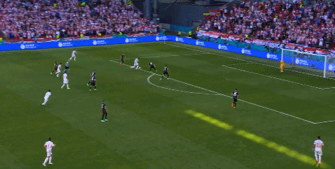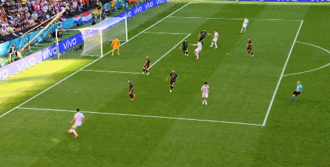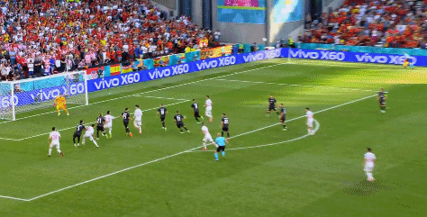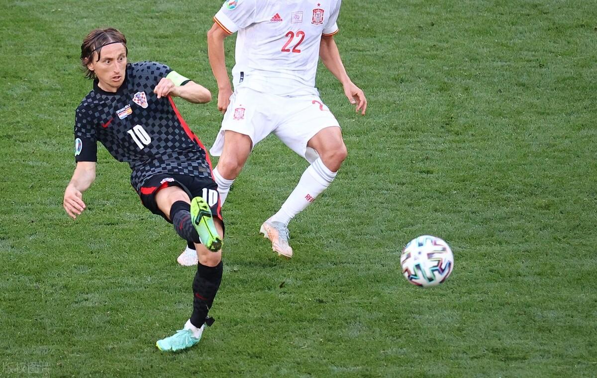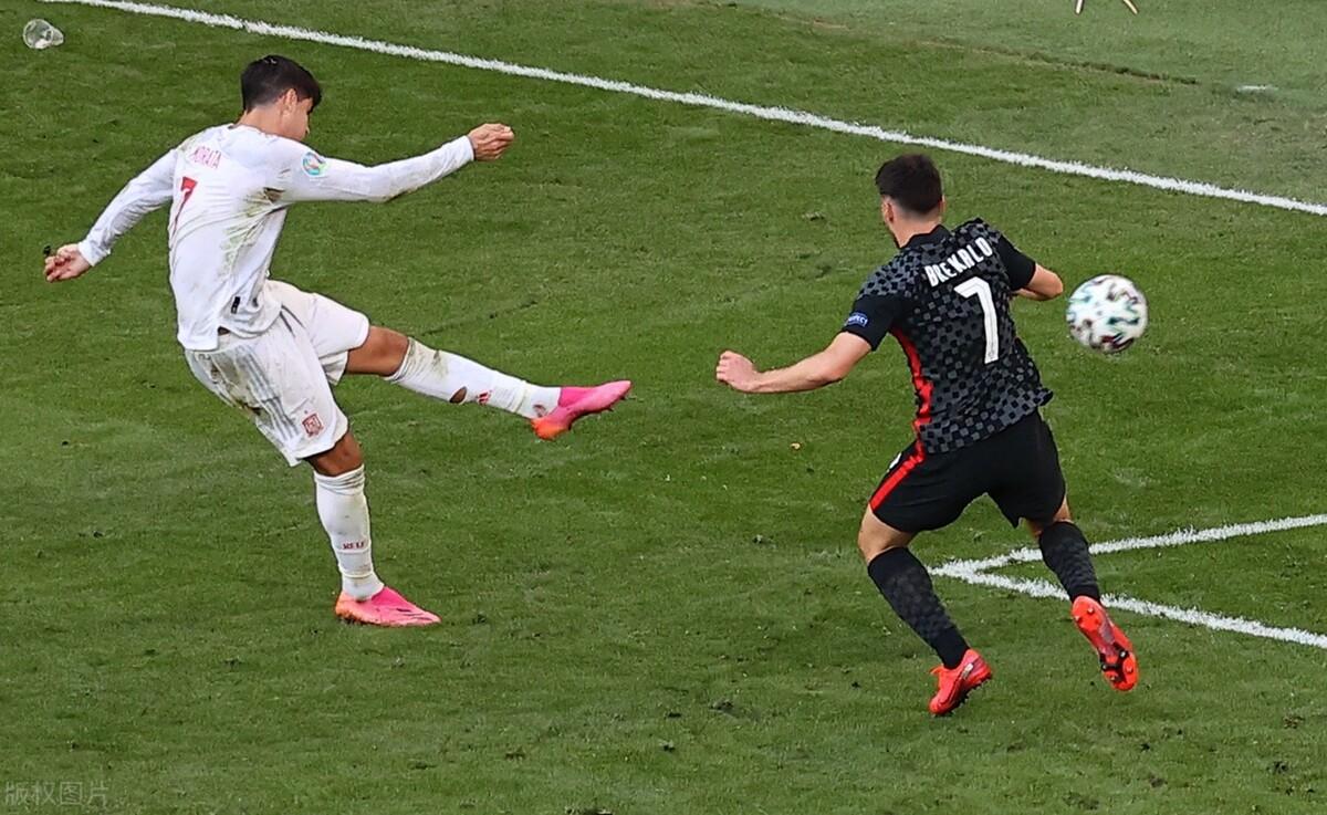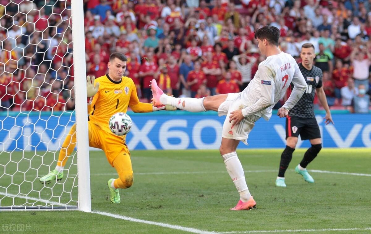 加时赛第100分钟,奥尔莫传中,克罗地亚球员布雷卡洛解围冒顶,莫拉塔停球凌空爆射破门,西班牙4-3克罗地亚。