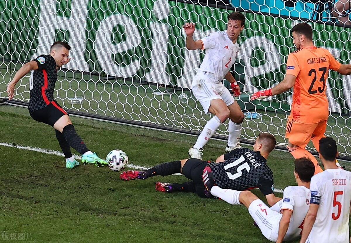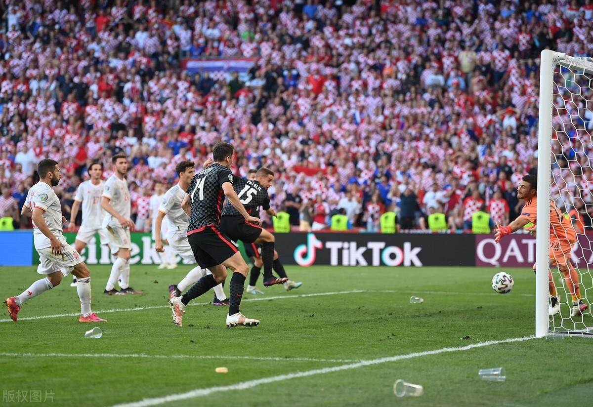 补时阶段,克罗地亚展示了顽强的一面,帕萨利奇反击机会中头球绝平,克罗地亚3-3西班牙!