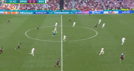 第90+2分钟,克罗地亚队扳平了比分!左路的传中到门前,替补出场的帕萨利奇头球破门,西班牙队3-3克罗地亚队。