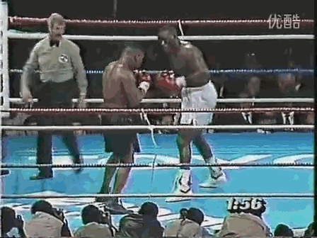 我们可以做到,当时道格拉斯不到30岁,可以说如日中天,虽然算不上一流高手,但也是二流里面的强悍角色。他身高吗1米92,臂展2米11,在身高臂展方面完爆泰森,他这次和泰森对决,恰好比较合理地利用了这一优势,我们可以看上图,他还是致力于打些刺拳来控制距离的,尽管不如霍利菲尔德技术精湛,他也不让泰森轻易近身。