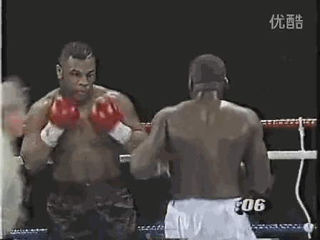 道格拉斯其实单纯依靠步伐和刺拳是无法真正控制泰森的,他不具备霍利菲尔德那样的防守和躲闪技术,尽管如此,他也经常搂抱泰森,化解重拳。另外道格拉斯并不惧怕泰森,心理上没有劣势,他敢于和泰森打对攻,你可以看上图,他的大摆拳虎虎生风,打得泰森一愣一愣的。当时道格拉斯战绩是28胜4负1平17场KO对手,虽然道格拉斯算不上重炮手,但拳头也不轻。