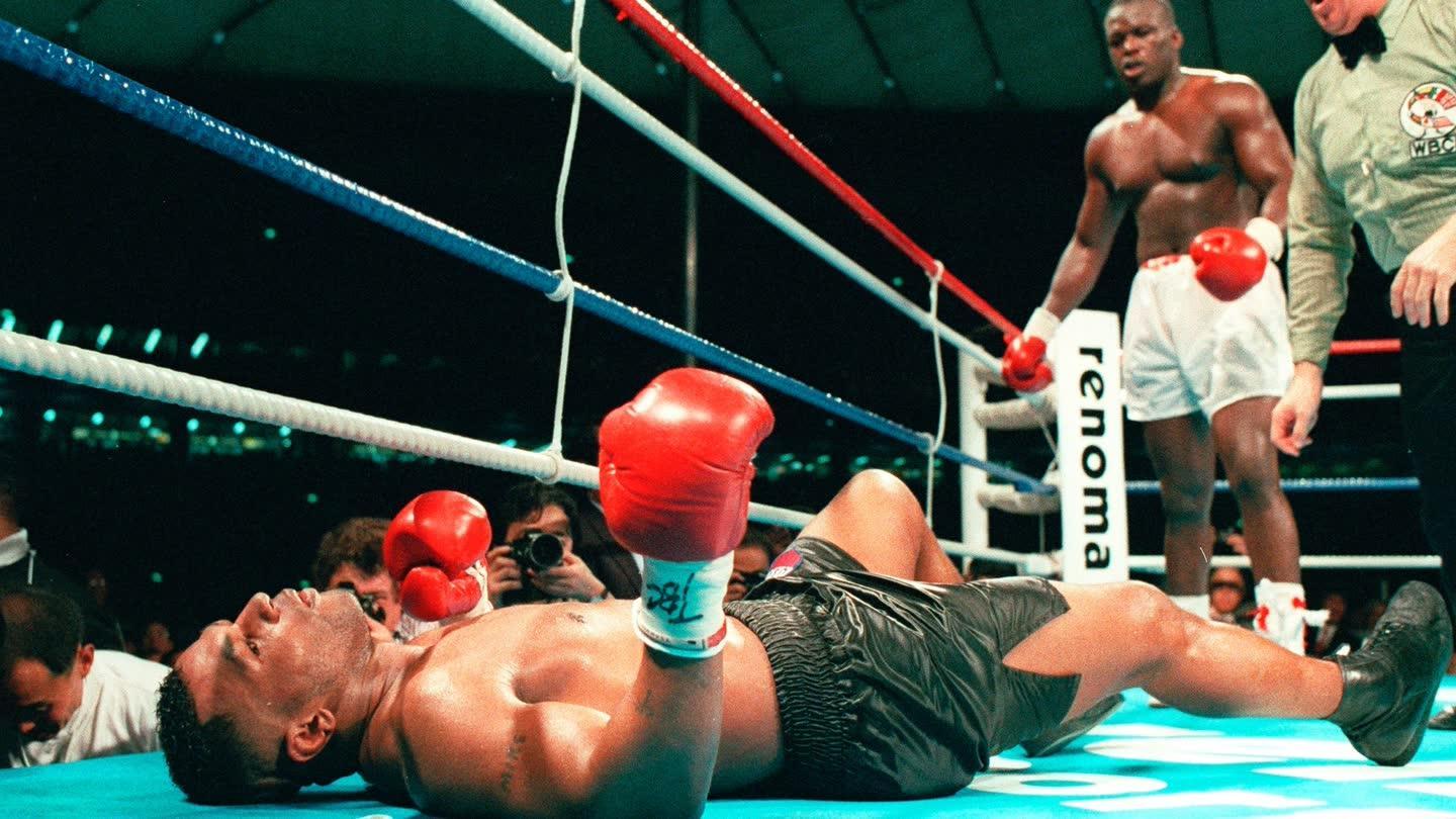 有人说场裁读秒的时间超过了8秒,甚至到了10秒以上,这是决定泰森最终输给道格拉斯的根本原因,个人认为这不是根本原因,只能说泰森有些不走运了。即使场裁少给道格拉斯读秒2-3秒钟,也不会扭转战局。因为道格拉斯站起来的时候,铃声已经响起了。第10回合,道格拉斯将泰森折磨得体力崩盘,斗志全无,道格拉斯刺拳开道,一记精准的右手上勾清晰击中泰森,这是很致命的一拳,泰森当时就被打蒙了,然后道格拉斯以教科书般的做摆拳和右手直拳轰炸泰森,一代拳王终于狼狈倒下。