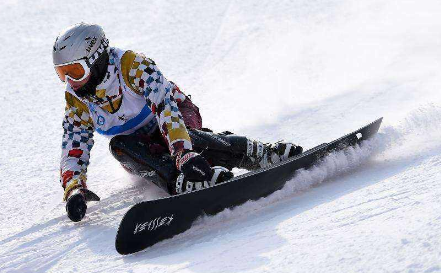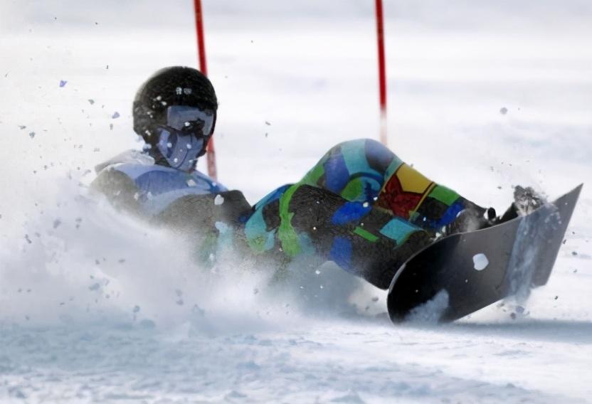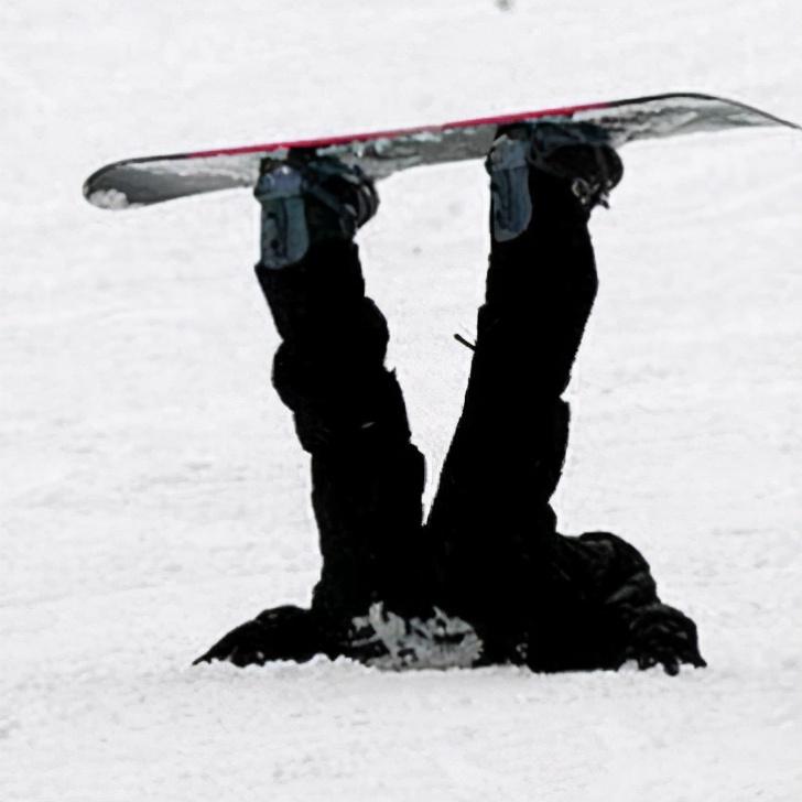 (5)用单板的后韧卡雪时摔倒(类似滑倒)时臀部要先着地,之后依次按照腰、背、手的顺序着地,将应力均匀分散过渡到身体的各部位,降低骨折的风险,同时下颌前收,并将滑雪板抬起。