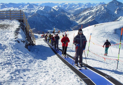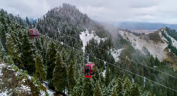 乘坐滑雪场的高速缆车6分钟即可到达山顶