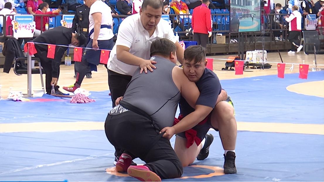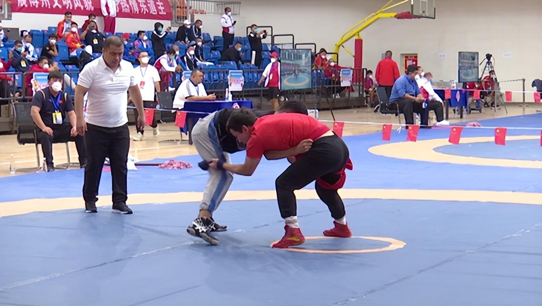 摔跤是我国古代各民族狩猎、防御野兽的手段之一,广受各族群众喜爱。 本届民族运动会中民族式摔跤共分7个跤种,分别为博克(蒙古族式)、且里西(维吾尔族式)、格(彝族式)、北嘎(藏族式)、绊跤(回族式)、希日木(朝鲜族式)、库热斯(哈萨克族式)。赛场上,运动员们凭借利力量与技巧角逐胜负,引得阵阵喝彩。
