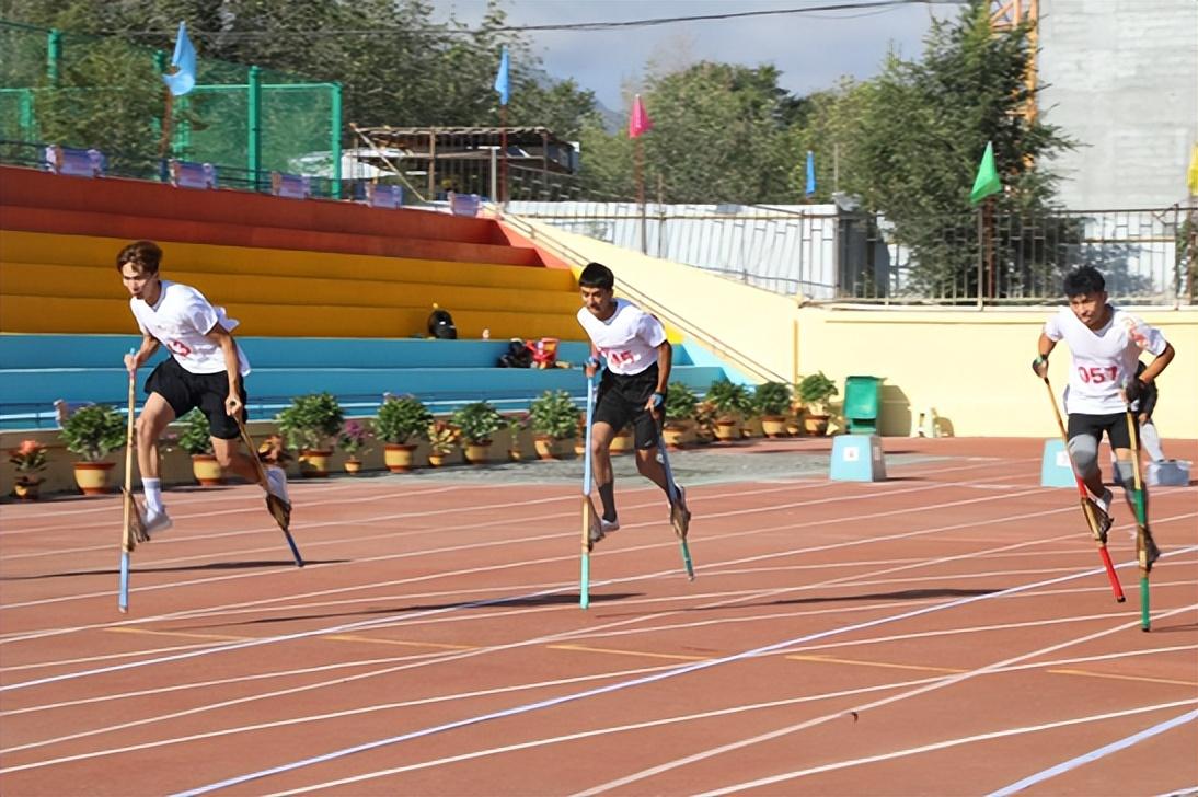 高脚竞速又称“踩高脚马”,流行于我国南方地区,原为苗族、土家族等在雨季代步、过河的工具,后发展为民间竞技游戏。 自全国少数民族传统体育运动会设项后,高脚竞速也在新疆各族群众间流传起来,不仅考验运动员的灵活性、协调性和平衡性,还极具观赏价值。运动场上,运动员们踩着高高的“竹马”在田径场上急速飞奔,格外有趣。