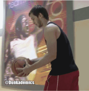 不过,要说到克拉克的招牌动作,那无疑是这招双跨下爆扣了,这个招式也被美国媒体称为“史上最难扣篮”。