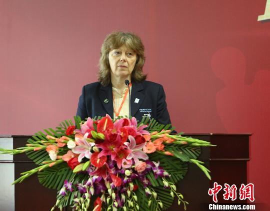 8月8日,国际赛法斗联合会主席朱莉博士在“功夫·赛法斗”启动仪式上讲话。 主办方 摄