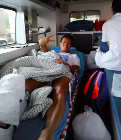 从曝光的照片来看,潘佳的骨折情况相当严重,胫骨和腓骨双双断成了两截,看起来相当吓人。但潘佳却相当坚强,在救护车上还笑着和工作人员打招呼,是不折不扣的铁汉。潘佳曾经是前国奥队球员,长期在广东本地球队效力。
