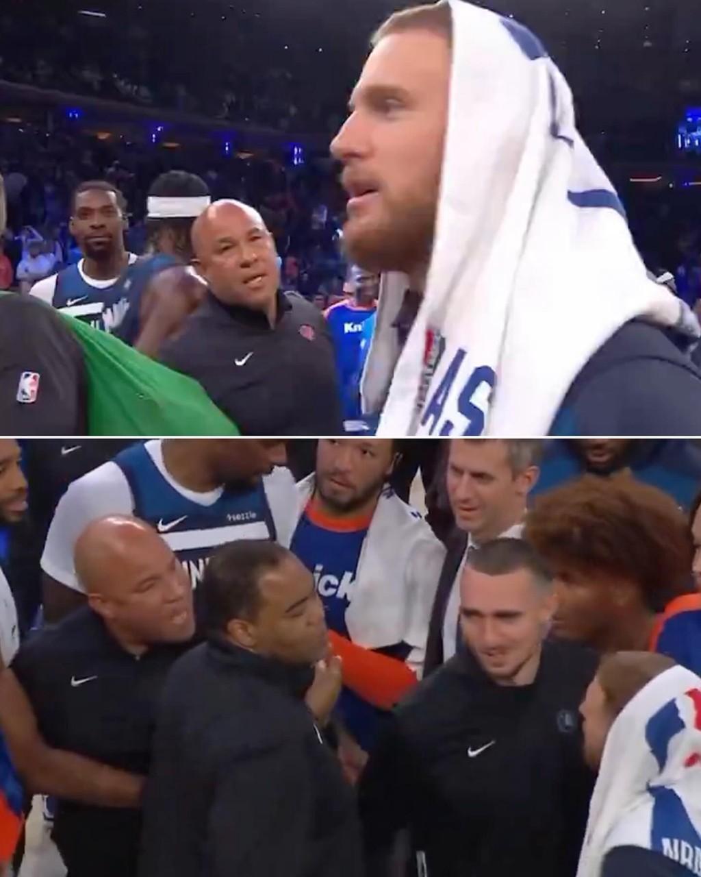 甚至赛后还和尼克斯助教老布伦森发生了激烈口角,表达着自己的不满。