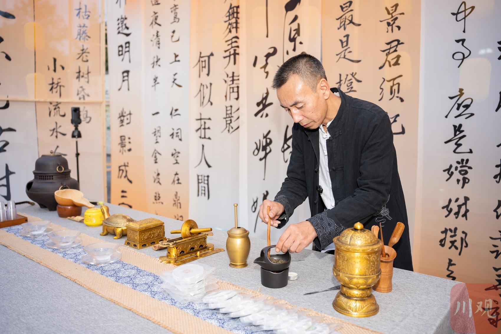 篮球赛举办间隙的青川七佛贡茶非遗表演。王治 摄