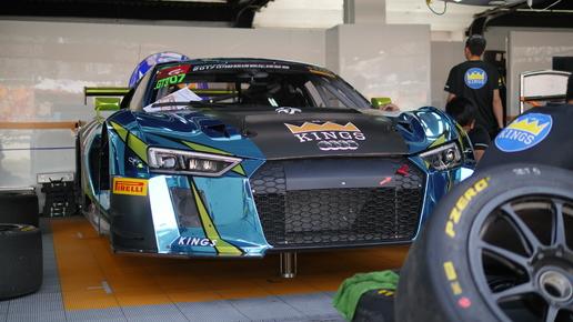 KINGS车队带来的新车奥迪R8将参加GT3等级的赛事,相比老款棱角更伶俐一些,造型更激进,电镀漆面实在是亮瞎了,马力被限制在550Ps。