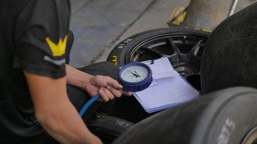 机修师在看全热熔轮胎压力,赛前把所有细节在捋一遍,比赛中犯一点小错误都有可能是致命的。