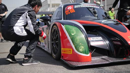 今年新开的组别GT4,迈凯伦570S造型很动感,不知道是不是前脸设计比较可爱,受到品牌HIPANDA的赞助。