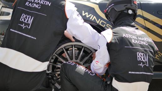 赛车进站,在更换车手的同时,车组人员对阿斯顿·马丁进行相关的检测及调整。