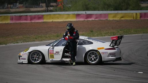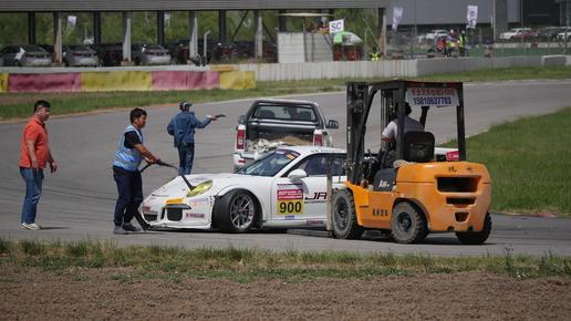 原地蠕动了半天也没办法继续比赛,车手只好放弃走出赛车。