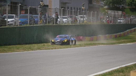 两台车在原地一直轰着油感觉像在呐喊一样,为了比赛每个大厂都投入了很多,如果退赛那之前的努力就全都白费了,R8努力了半天又回到比赛当中。