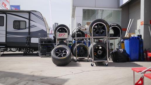 进到场内直接钻到各大厂PIT STOP(P房)里,每家门前摆放最多的的就是全热熔轮胎。顾名思义,热熔轮胎胎面温度升高会融化呈凝胶状态,能给车辆提供极佳的抓地力,缺点就是太费,不过赛车场上的争分夺秒谁会考虑这点成本。