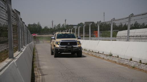 比赛进入最后倒计时,车组人员陆续离场,机修师抓住最后的机会为赛车轮胎保温。