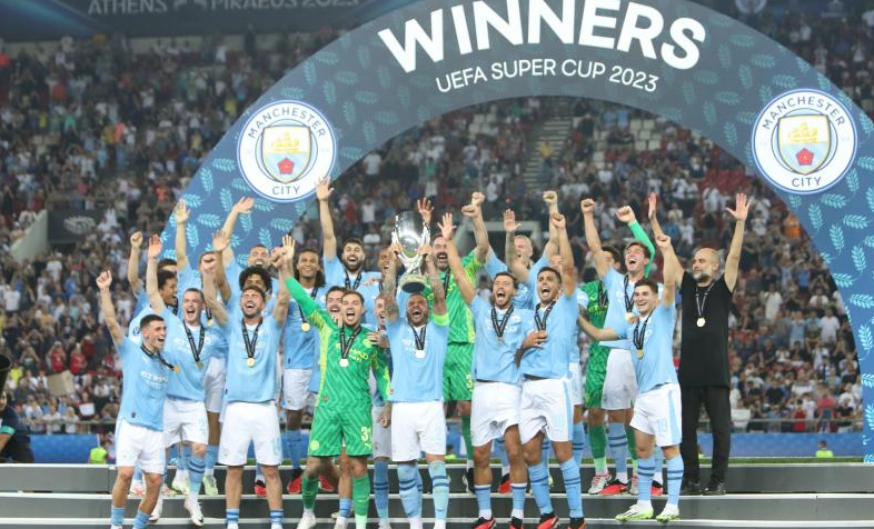 8月17日凌晨,2023欧洲超级杯在希腊比雷埃夫斯举行。曼城经过点球大战击败塞维利亚,队史首次夺得冠军。