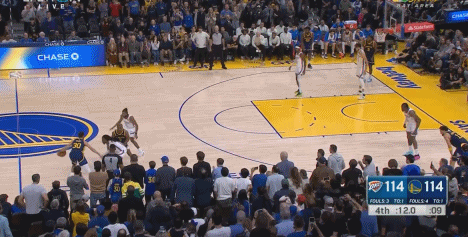 直播吧11月19日讯 NBA常规赛,勇士和雷霆的比赛已经进入了加时。